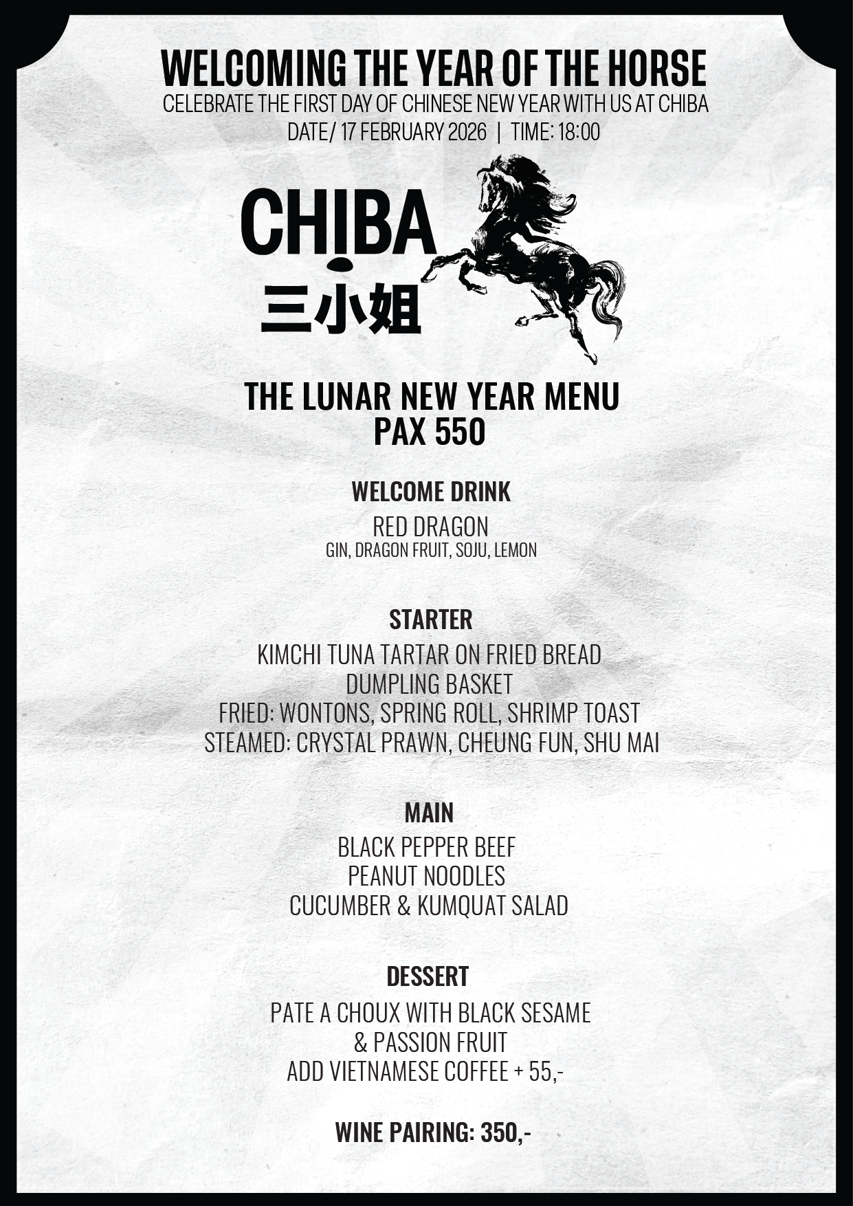 CELEBRATE CHINESE NEW YEAR AT CHIBA BOOK NOW OPENING HOURSTUE-SAT: 17:00-23:00ADDRESSVESTERBROGADE 561620 COPENHAGEN V BOOK TABLEMENUABOUT